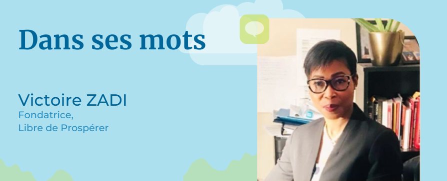 Dans le cadre de la série « Dans ses mots » mettant en vedette des histoires de femmes entrepreneures à travers le Canada, Prêteurs novateurs est fière de souligner Victoire ZADI, fondatrice de Libre de Prospérer. Libre de Prospérer est une plateforme qui met à la disposition des personnes en quête d'indépendance financière des outils, des stratégies et des opportunités de création de richesse qui leur permettront d'augmenter leurs revenus, et ce, même s'ils partent de zéro. Libre de Prospérer est une entreprise individuelle qui existe formellement depuis novembre 2020 et qui opère principalement en ligne pour le moment. Nous vous invitons à cliquer sur le lien suivant pour en savoir plus sur Libre de Prospérer : https://libredeprosperer.com/